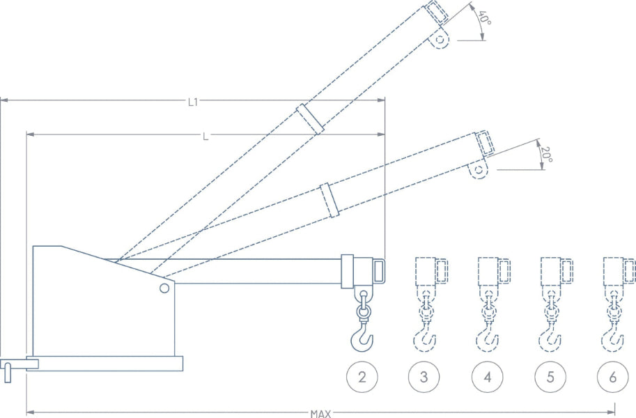 Transforms your forklift into a crane: 3-way height adjustable and 6-way extendable.